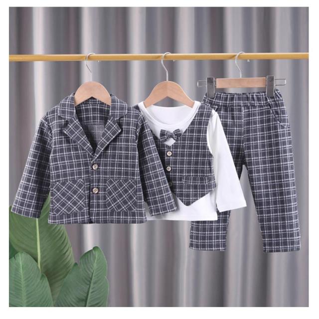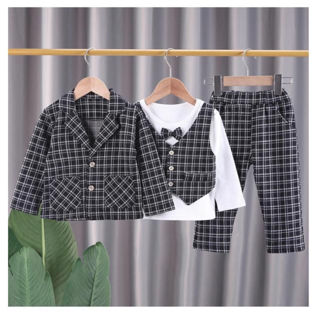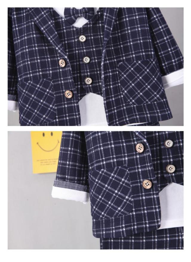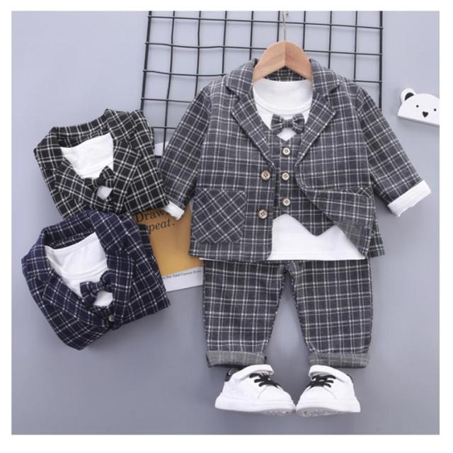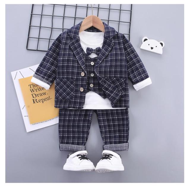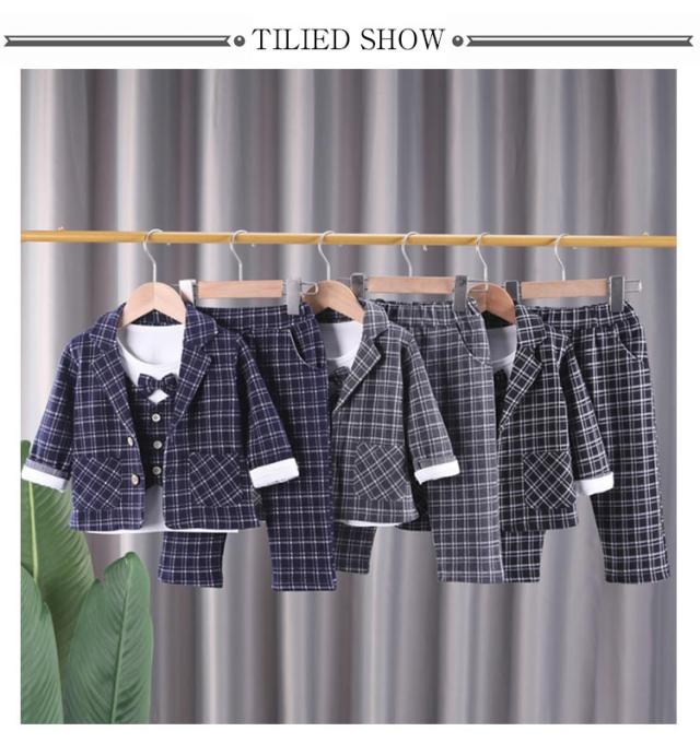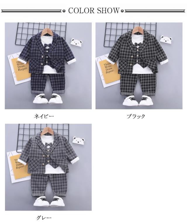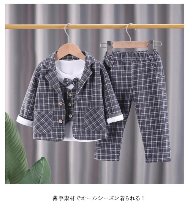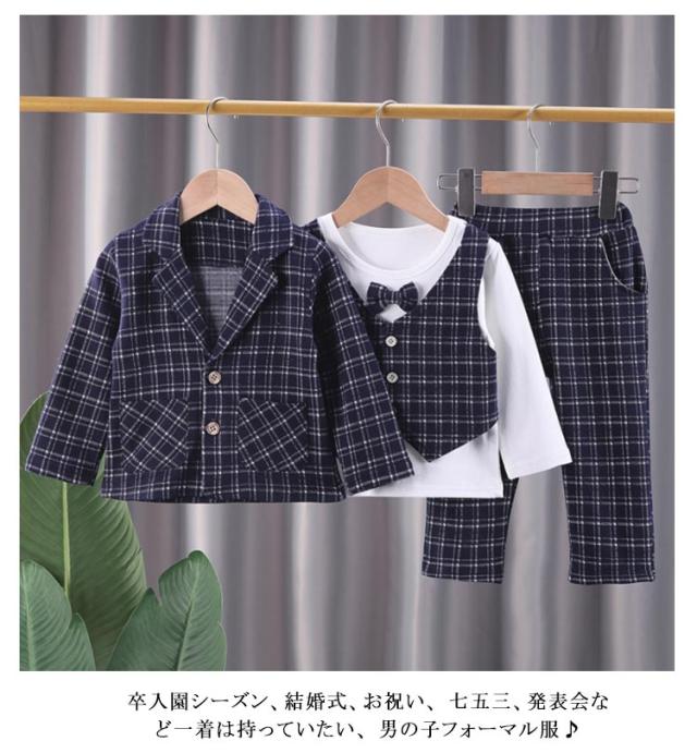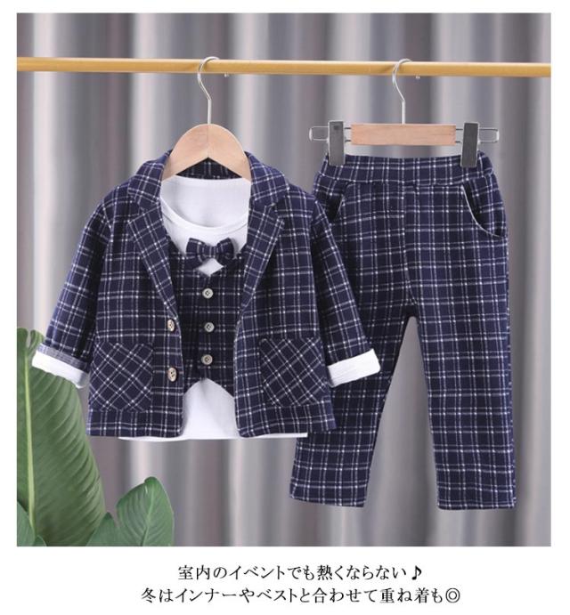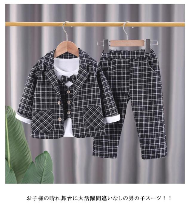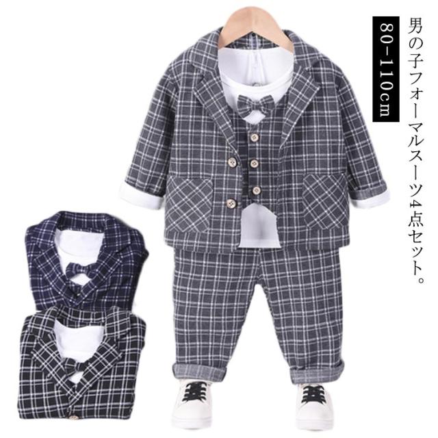 ベビー スーツ チェック柄 4点セット 男の子スーツ 子供服 フォーマル シャツ 長袖 ロングパンツ 上下セット ジャケット 赤ちゃん フォーマルスーツ 子供スーツ 洋服 赤ちゃん セットアップ 可愛い 結婚式 七五三 入学式 卒園式 幼稚園