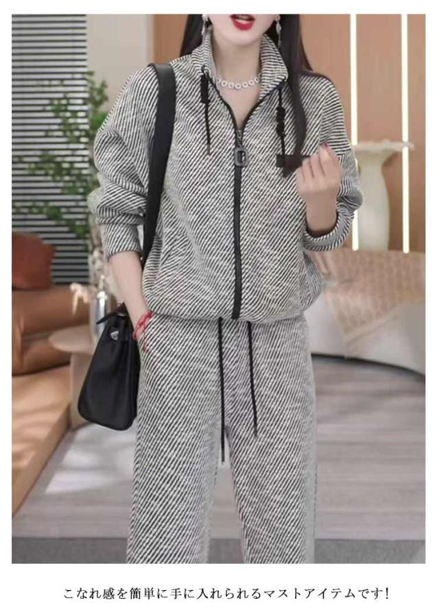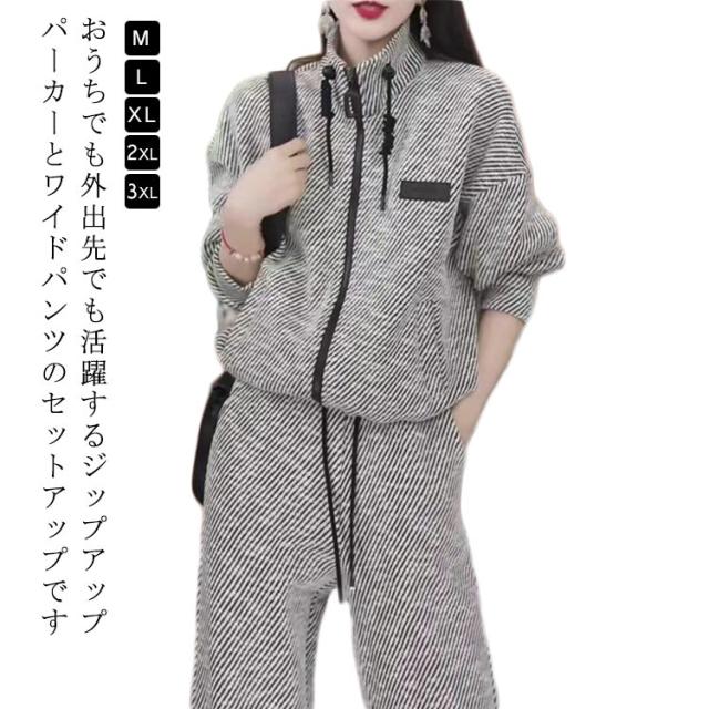 春 スタンドカラー ストライプ フードなし ワイドパンツ レディース パーカー ストレートパンツ レディース セットアップ 上下セット スポーツウェア ルームウェア おしゃれ パーカー 秋 冬 大人カジュアル