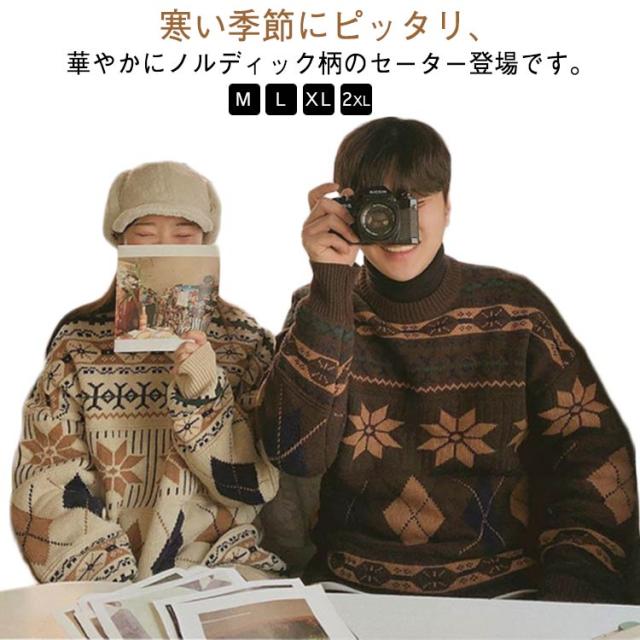 長袖 ニット ノルディック柄 セーター カジュアル ニットセーター ニット 暖かい レディース 幾何柄 メンズ トップス ゆったり 大きいサイズ 体型カバー カップル M L XL 2XL