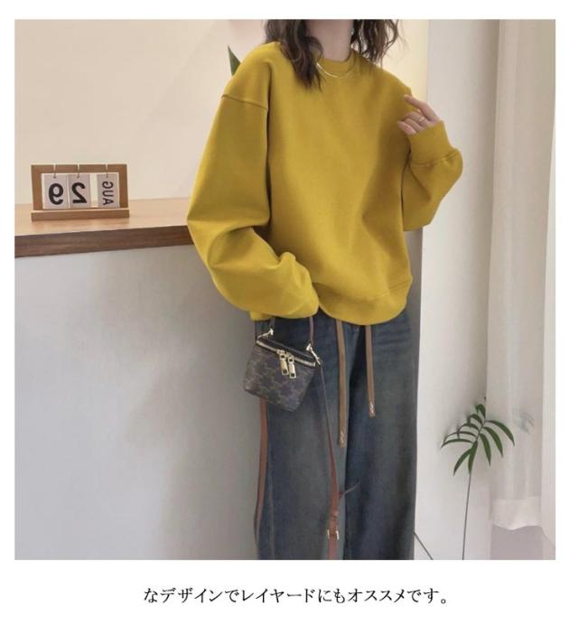 | ロングシーズン活躍の薄手スウェット生地トレーナーです。 長く着れる無地でシンプルなデザインは、トレンドに左右されない安定感のある1着です。 身体のラインを拾いにくいゆったりサイズのトレーナーなのでリラックスして着こなせます! なデザインでレイヤードにもオススメです。 飽きが来ず、スカートにもボトムにも合わせやすく、着回し力抜群のトレーナーです! | |