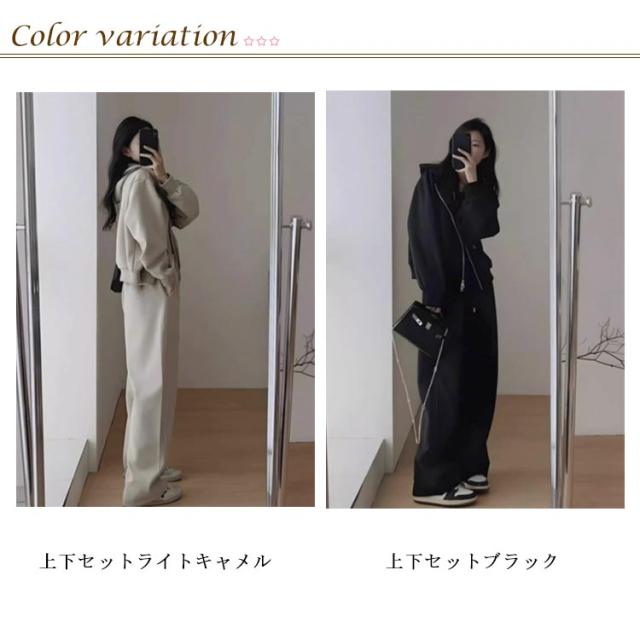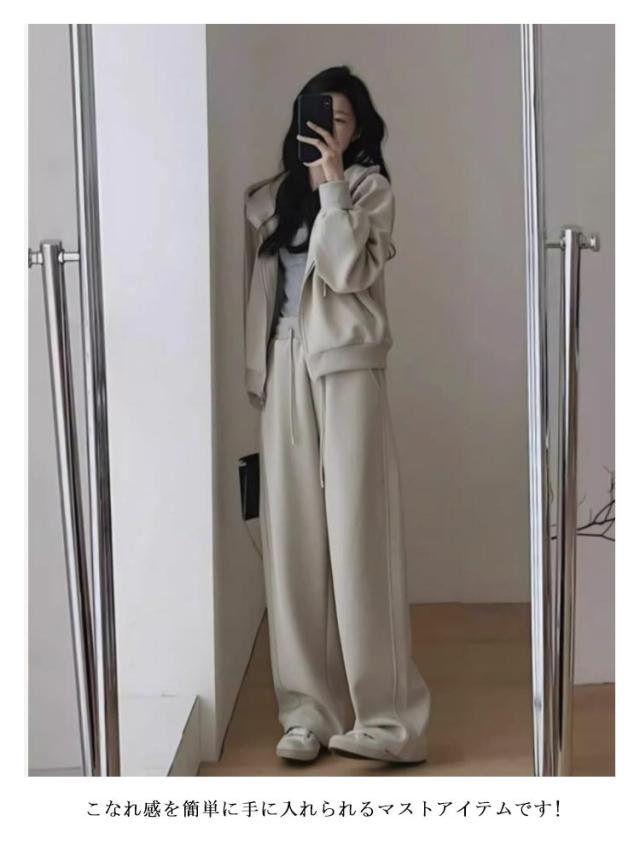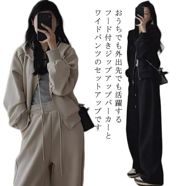レディース レディース 上下セット ジップアップ フード付き 秋 セットアップ スポーツウェア 無地 フード付き ワイドパンツ ルームウェア おしゃれ 春 レディース 冬 大人カジュアル