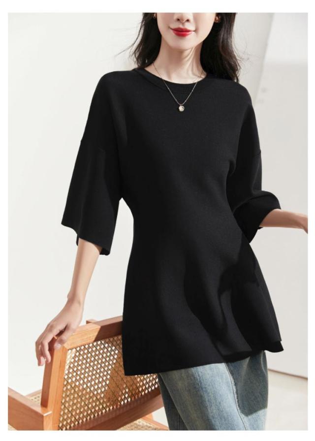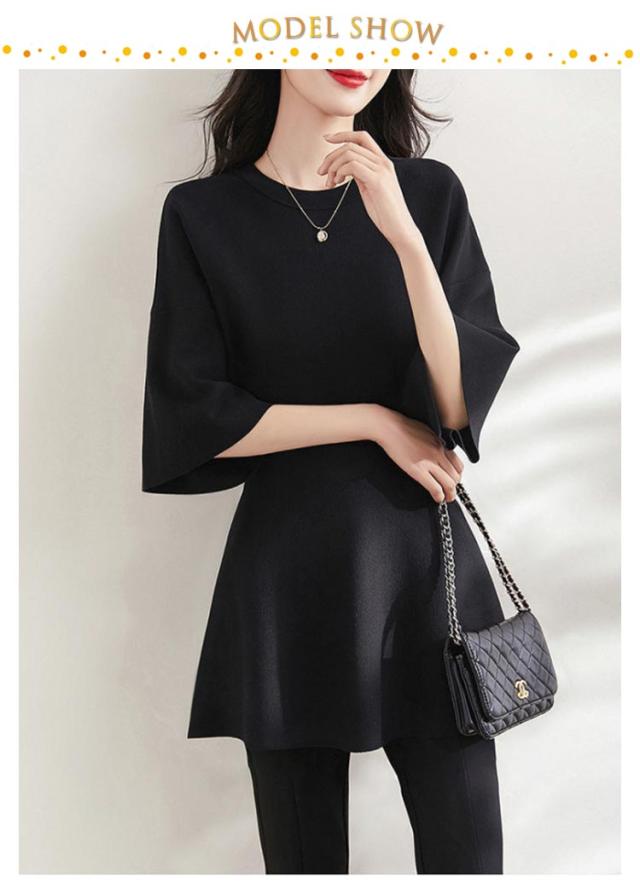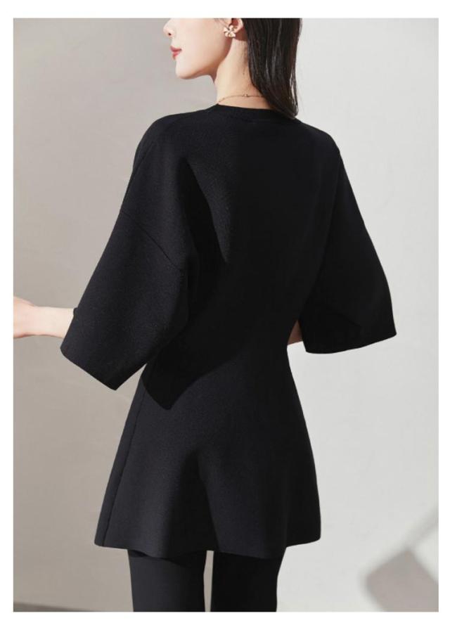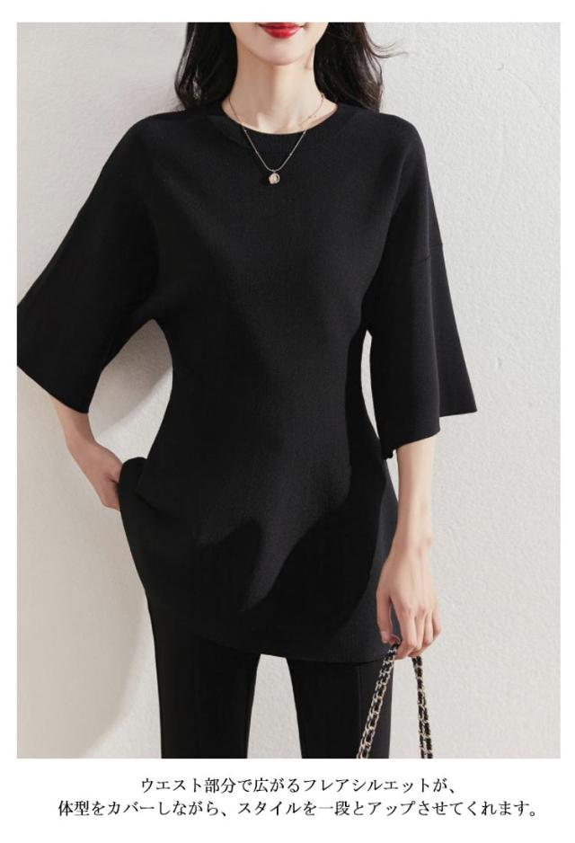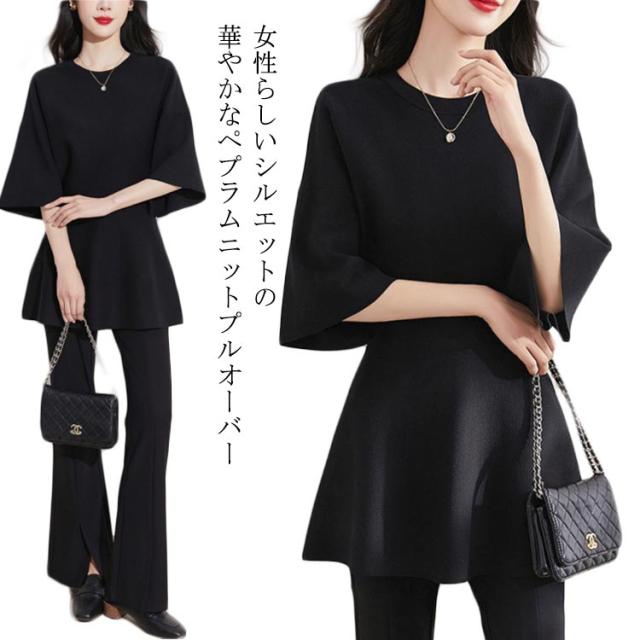 レディース ペプラム フィット 五分袖 ニット フレア オケージョン 裾フレア ニットトップス ニットプルオーバー シンプル きれいめ ペプラムニット セレモニー 通勤 オフィスカジュアル