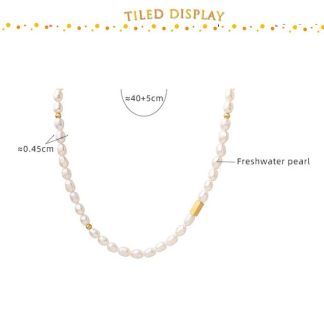 | ・淡水パールネックレス ・首回りに沿ったデザイン。1つではもちろん他のネックレスとの重ね付けもオススメ◎ ・デイリーにはもちろん、オケージョンシーンにもお使い頂けます♪ | |