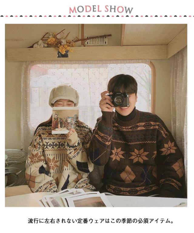 長袖 カジュアル ニット ゆったり メンズ ノルディック柄 セーター ノルディック柄 レディース 幾何柄 ニット トップス 暖かい 大きいサイズ 体型カバー カップル M L XL 2XL