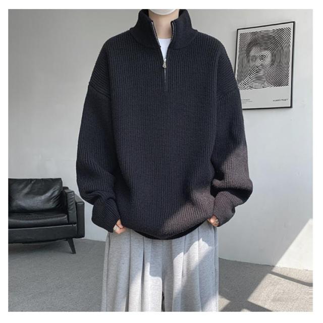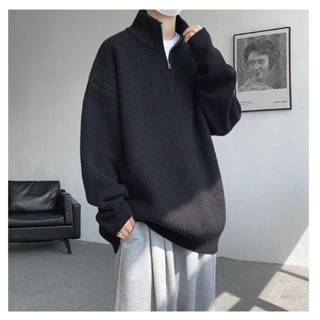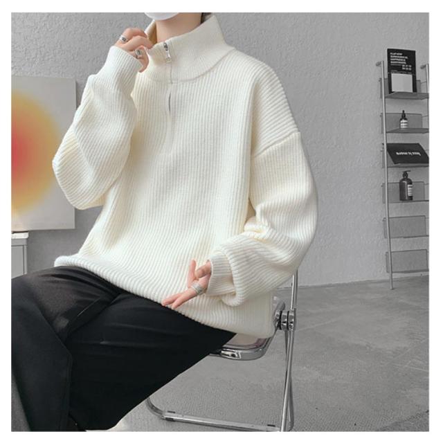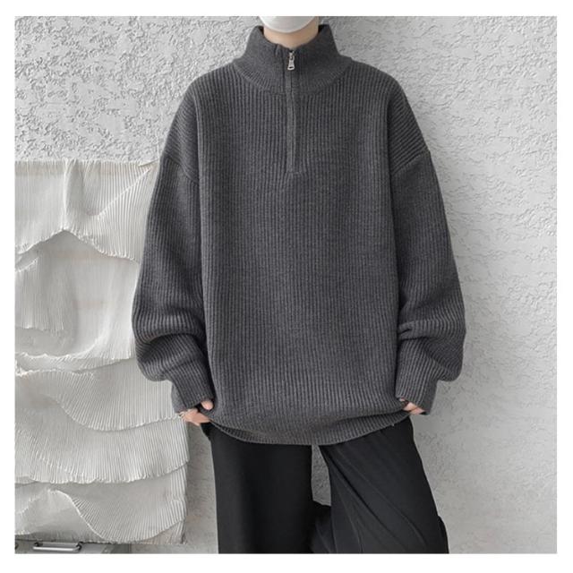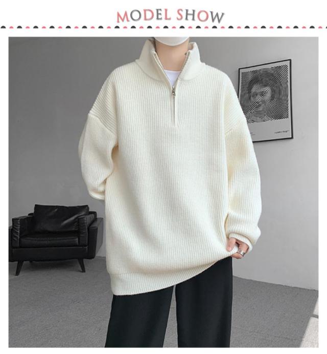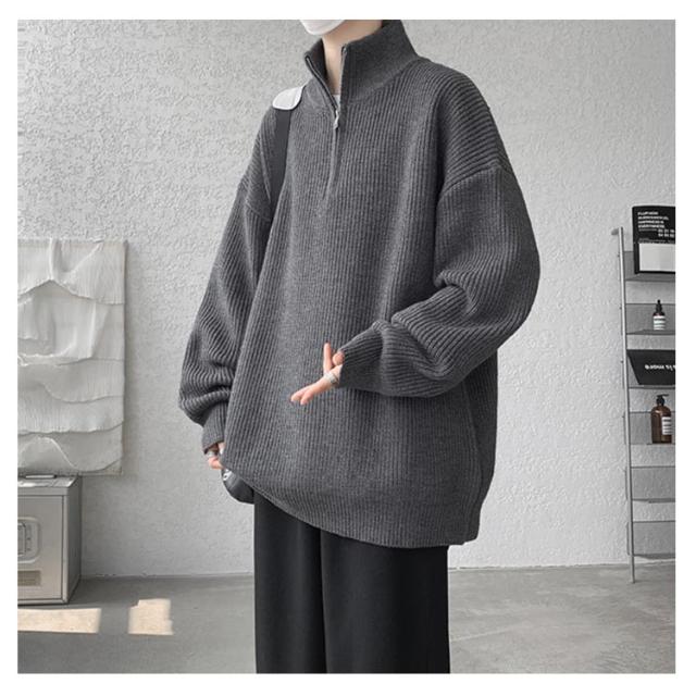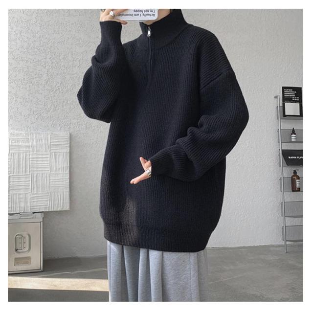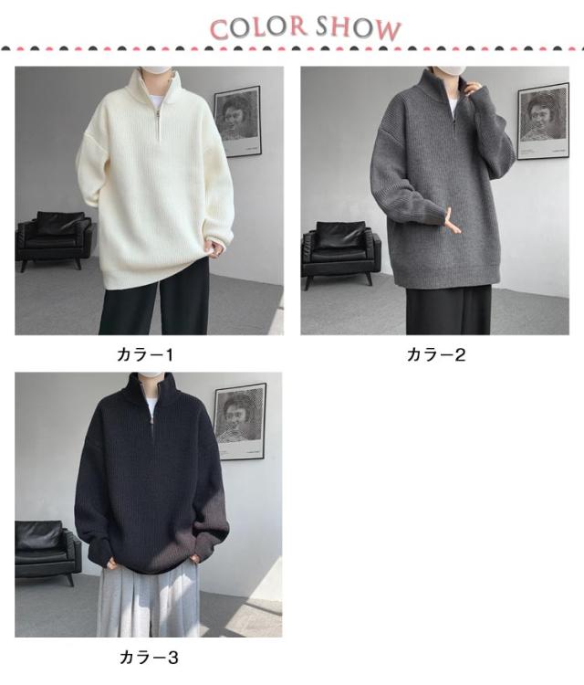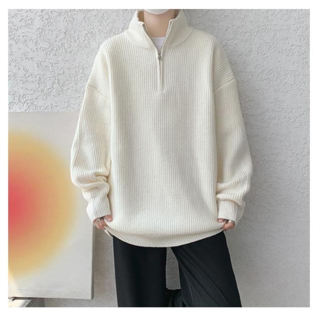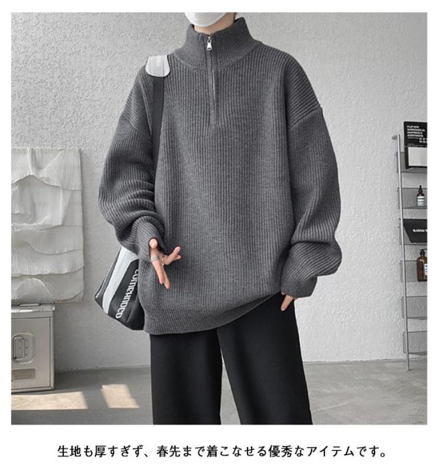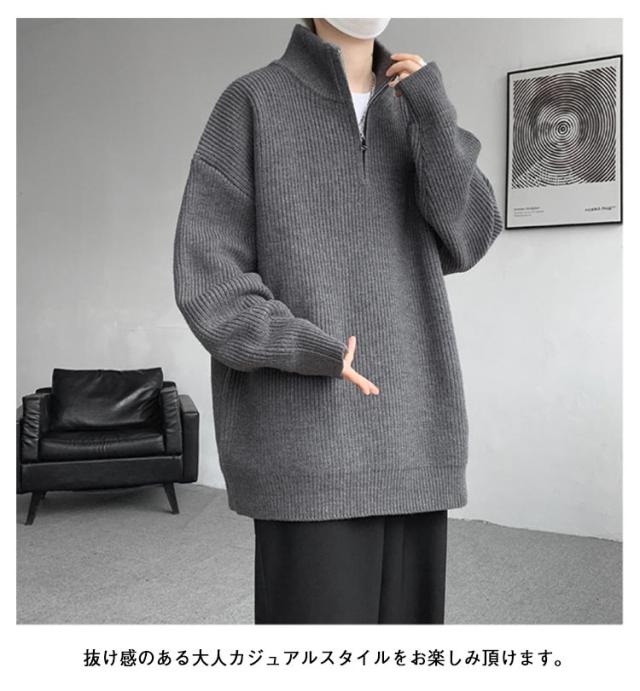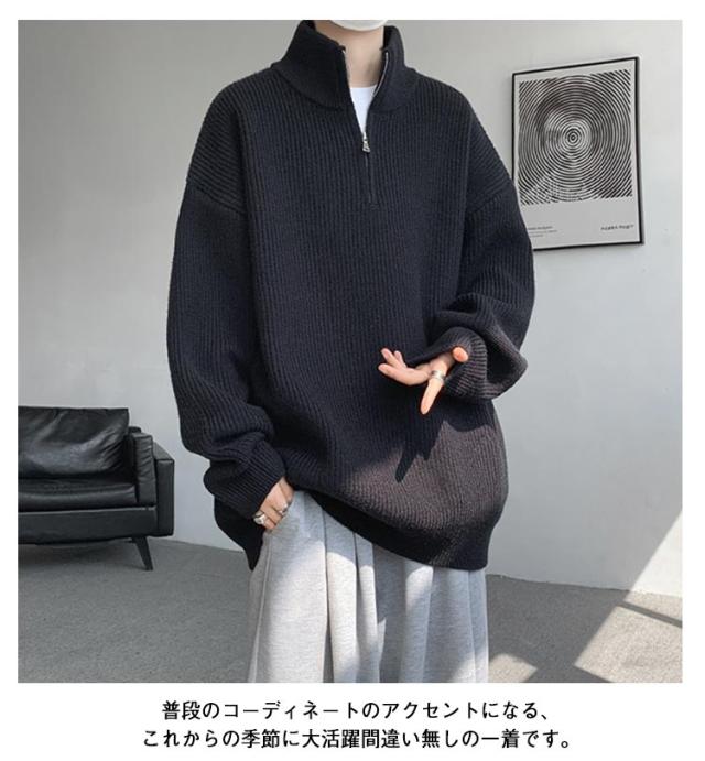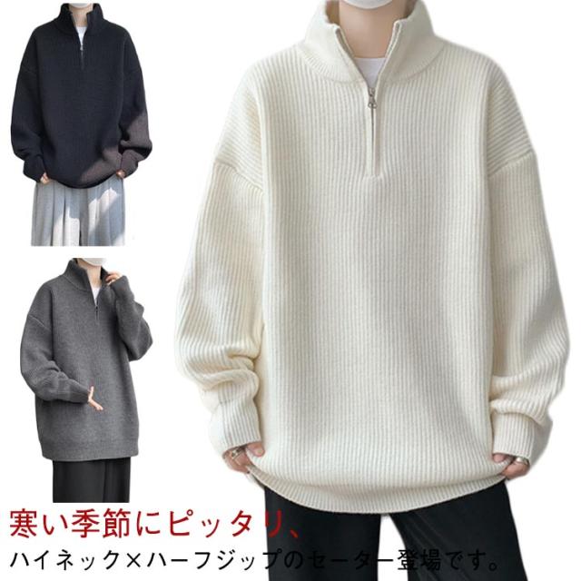 ハイネック ハーフジップ ゆったり ニットセーター セーター おしゃれ ニットトップス 長袖 ニットソー メンズ 韓国ファッション XL M L ハーフジップ 2XL