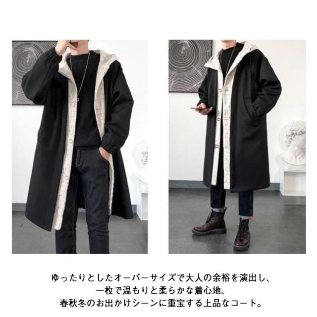ロングコート フェイクレイヤード M メンズ モッズコート ロングジャケット ツイード切り替え フード付き 大きいサイズ L 裏起毛 XL 2XL 3XL