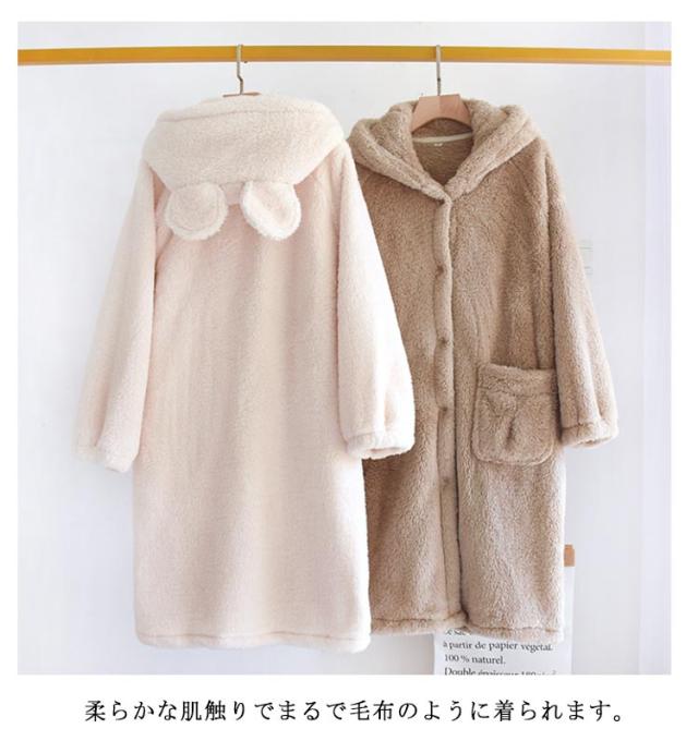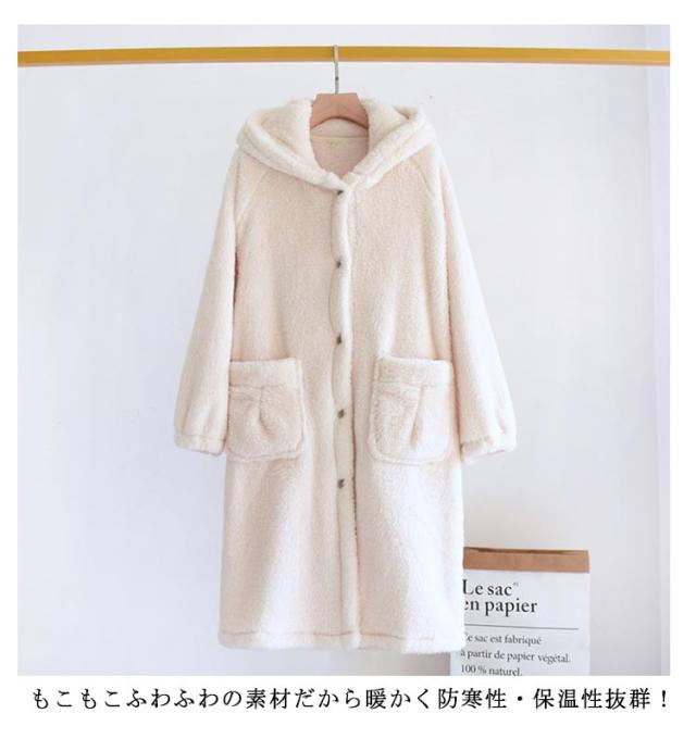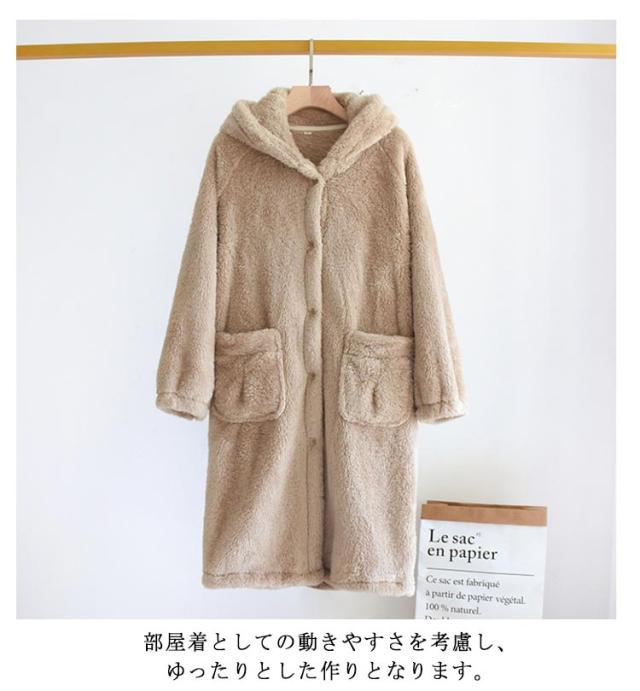厚手 コーディガン レディース ガウン 部屋着 暖かい カーディガン 着る毛布 部屋着 アイボリー ポケット付き ボア ロング丈 フランネル ブラウン ナチュラル 可愛い