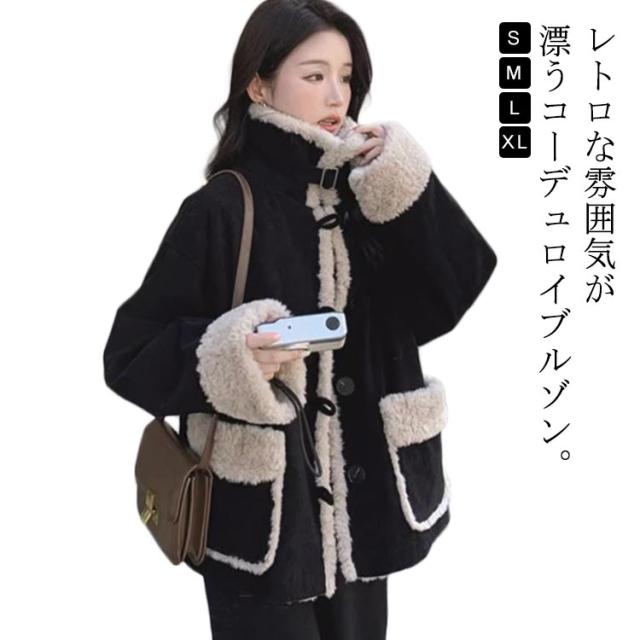 ブルゾン レディース 折襟 防寒 アウター 裏キルティング コーデュロイ コーデュロイコート 立ち襟 2way コーデュロイ 韓国ファッション おしゃれ 切り替え ビッグサイズ 中綿コート 中綿ジャケット 秋冬 あったか ショート丈 通勤 大人かわいい 冬物
