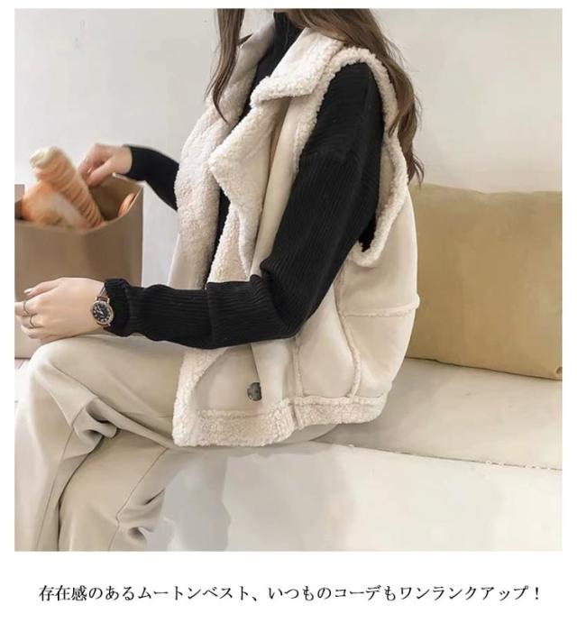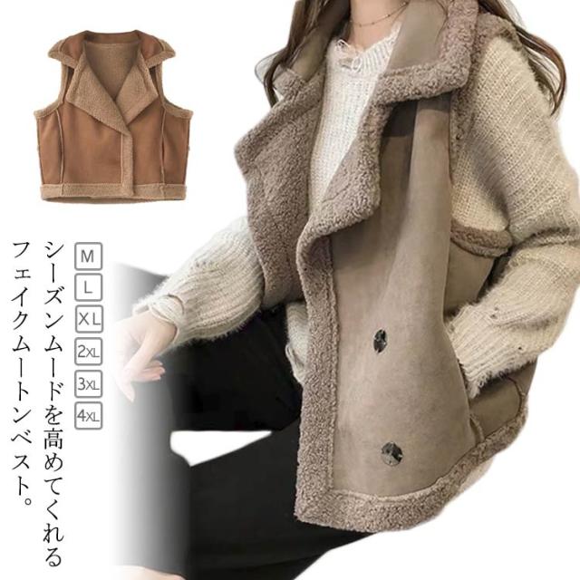 ベスト レディース 上着 ボアベスト ムートンジャケット フェイクムートン ムートンコート ノースリーブ あったか ムートンベスト ムートンベスト 防寒 秋冬 袖なし ボアジャケット ブルゾン かっこいい