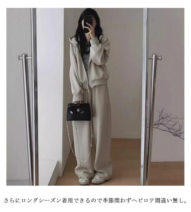 フード付き レディース ジップアップ ルームウェア ワイドパンツ 上下セット レディース レディース フード付き 春 スポーツウェア 無地 おしゃれ パーカー 秋 冬 大人カジュアル