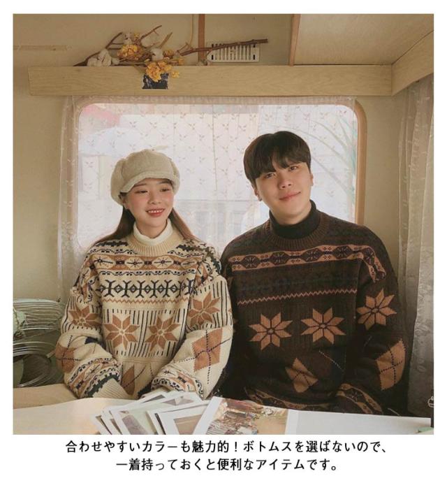 長袖 ノルディック柄 ノルディック柄 メンズ ニット ニットセーター M 暖かい レディース 幾何柄 ニット トップス ゆったり セーター 体型カバー カップル 大きいサイズ L XL 2XL