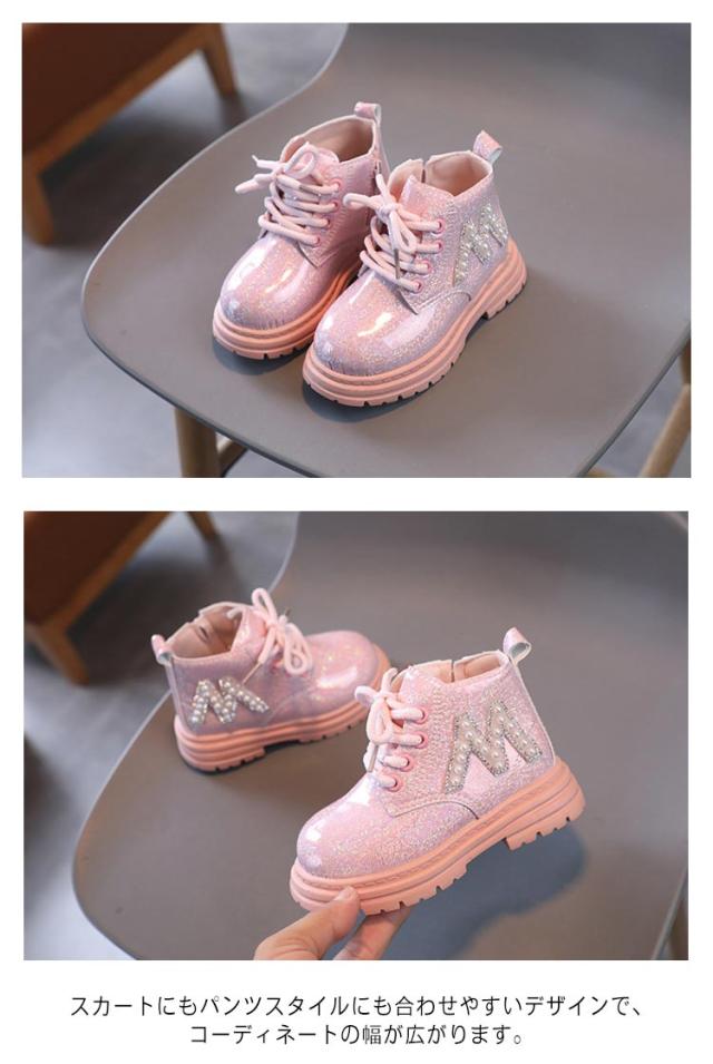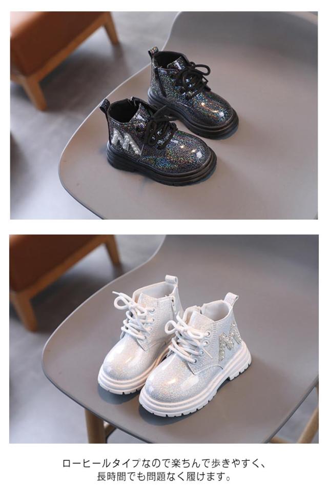 キラキラ 編み上げ かわいい 女の子 ブーツ 春 キッズブーツ ショート 靴 ショートブーツ 秋冬 シューズ 靴 子供用ブーツ ベビー 秋 おしゃれ 通園 ショートブーツ 通学 キッズ 歩きやすい 滑り止め 裏起毛なし サイドジップ 誕生日 ギフト プレゼント
