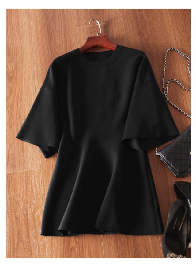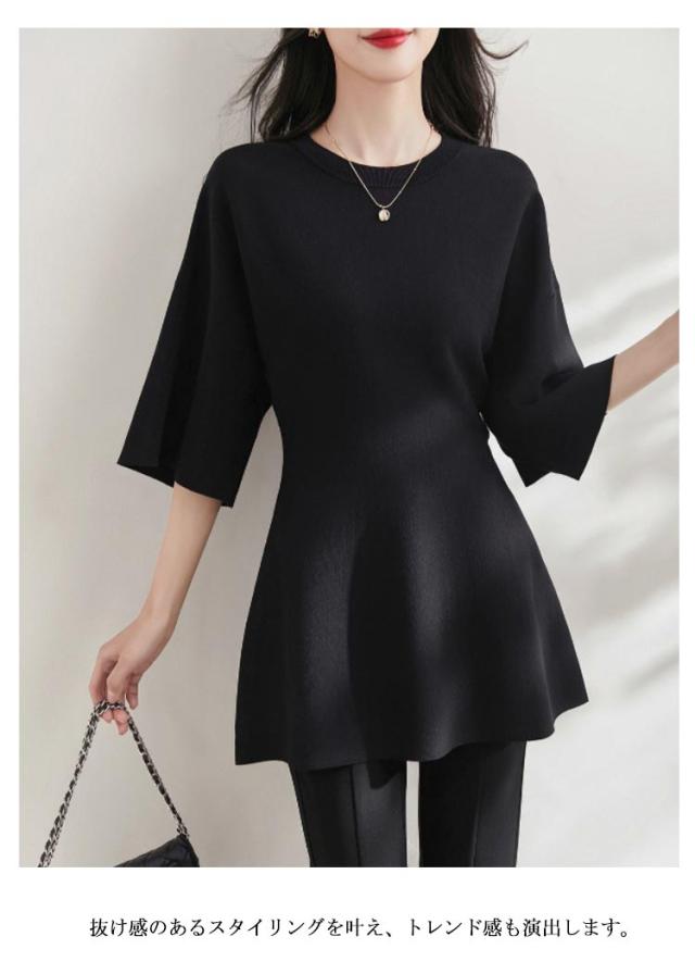 ペプラムニット ニット ペプラムニット 五分袖 フィット レディース ペプラム フレア 裾フレア ニットプルオーバー シンプル きれいめ オケージョン セレモニー 通勤 オフィスカジュアル