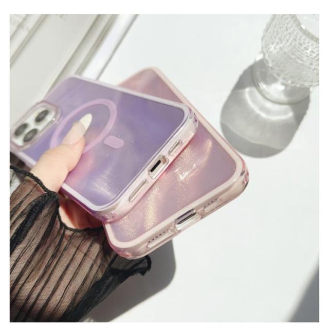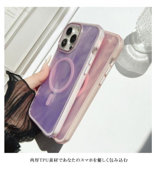 | 光に反射してきらきら輝く。見るたび元気を貰えそうなケース 背面にデザインされたグリッターのきらめきが美しい高級感漂う MagSafe対応充電器および各種アクセサリーはケースを装着したまま使用可能 肉厚TPU素材であなたのスマホを優しく包み込む | |