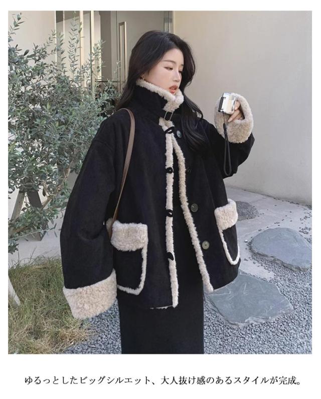 レディース アウター 中綿ジャケット ブルゾン ビッグサイズ 韓国ファッション コーデュロイ 中綿コート 折襟 コーデュロイコート 2way 立ち襟 おしゃれ コーデュロイ 裏キルティング ボア 切り替え 秋冬 あったか ショート丈 通勤 大人かわいい 冬物
