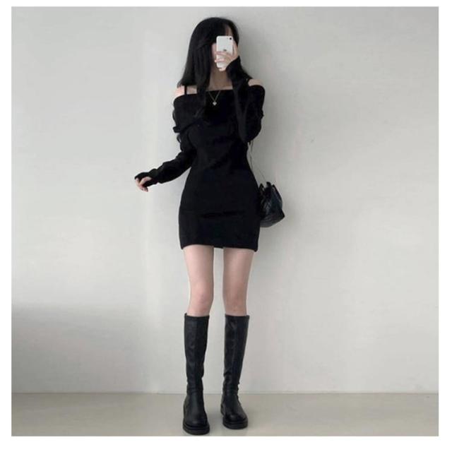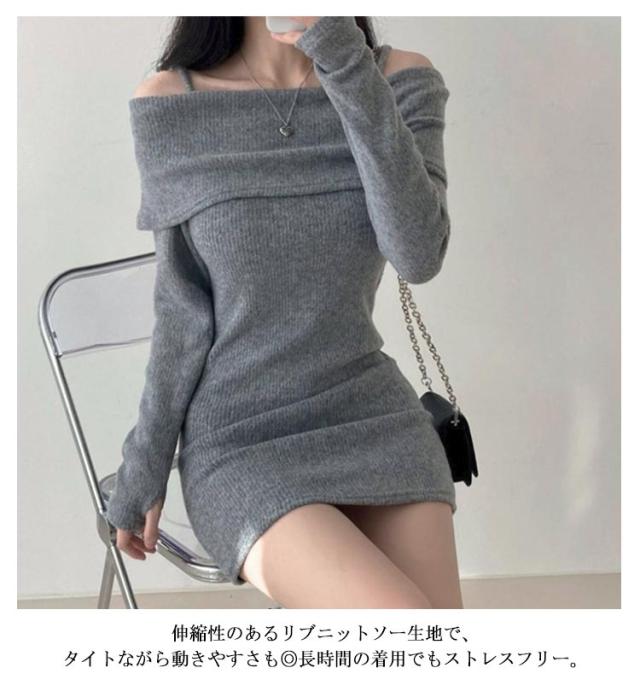 ワンピース オフショルダー リブ ミニ 長袖ワンピ 肩出し オフショルダー ワンピ チュニック丈 ニットソー セクシー レディース 肩紐付き キャミワンピース ワンピース ワンピース 春ワンピース 秋ワンピース 指穴付き