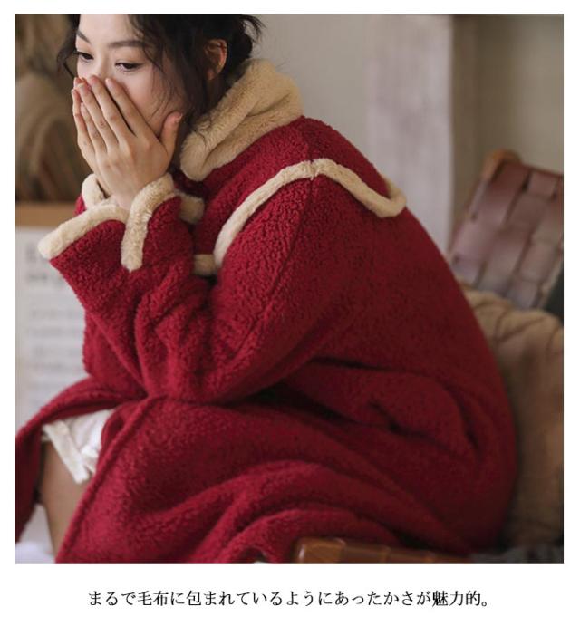 ボアコート 可愛い ルームウェア ボアワンピース 着る毛布 アウター 羽織り ワンピース 柔らかい レディース ステンカラーコート シープボア もこもこ ふわふわ フェイクファーカラー ロング丈 厚手 ソフト 防寒