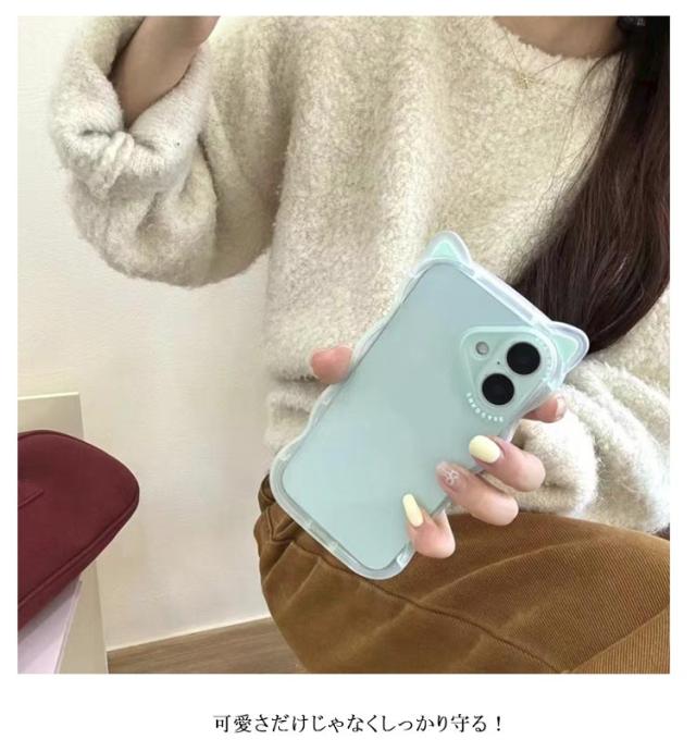 | ねこ好きさんへ キュートなねこ耳ケースに癒やされる うねうねフレームが手にしっくりフィット クリアな背面で自分らしくアレンジ自在♪ 可愛さだけじゃなくしっかり守る! 操作性もバッチリ、毎日がもっと快適に! | |