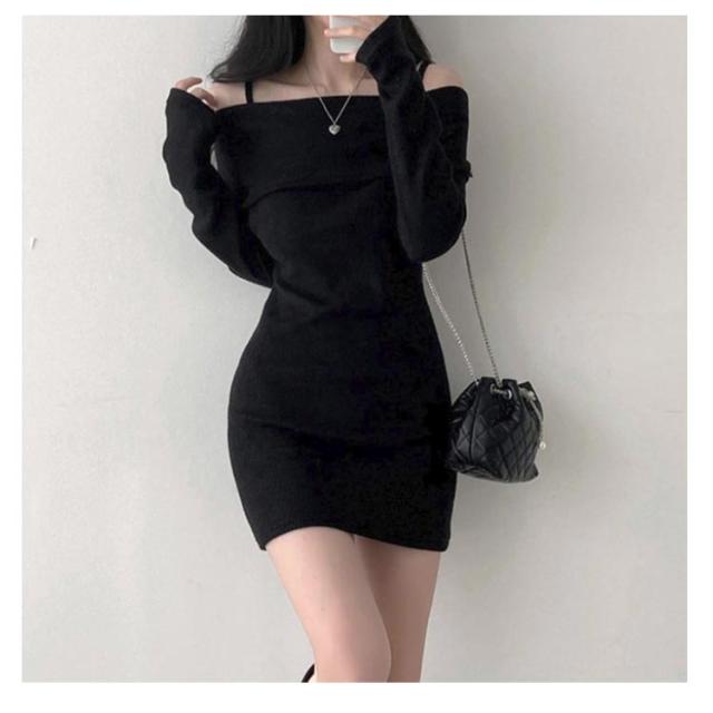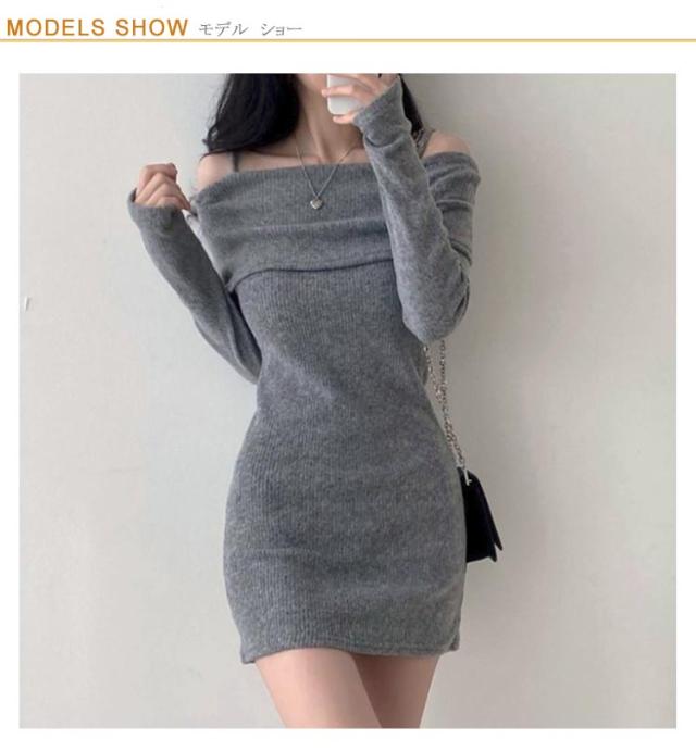 オフショルダー ニットソー リブ ワンピース 長袖ワンピ ワンピ 肩出し チュニック丈 オフショルダー 肩紐付き セクシー レディース キャミワンピース ワンピース 長袖 ワンピース 春ワンピース 秋ワンピース 指穴付き