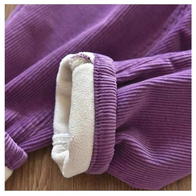 | 秋冬のマストバイアイテム!裏起毛のコーデュロイロングパンツ。 通学・通園はもちろん、お家でのリラックスウェアとしても◎ 裏側にフリース素材、しっかり厚手でへたりにくく、肌触りふわふわで暖かいのが特徴。 ソフトで柔らかい肌触り、どんな動きもサポートしてくれる。 トレーナーやロンtなどカジュアルスタイルにお勧めです。 | |