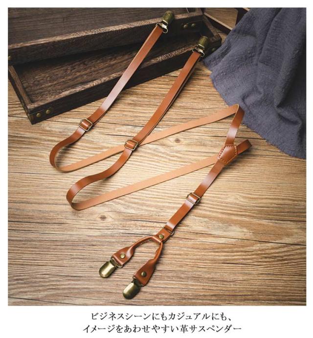 サスペンダー 革 皮 革 レザー ズボン吊り 吊りバンド スリムサスペンダー メンズ レディース ブラック 黒 サスペンダー 15mm幅 メンズ レディース クリップ 革サスペンダー 吊りバンド 長さ調節可能 男性 女性 細め カジュアル ビジネス