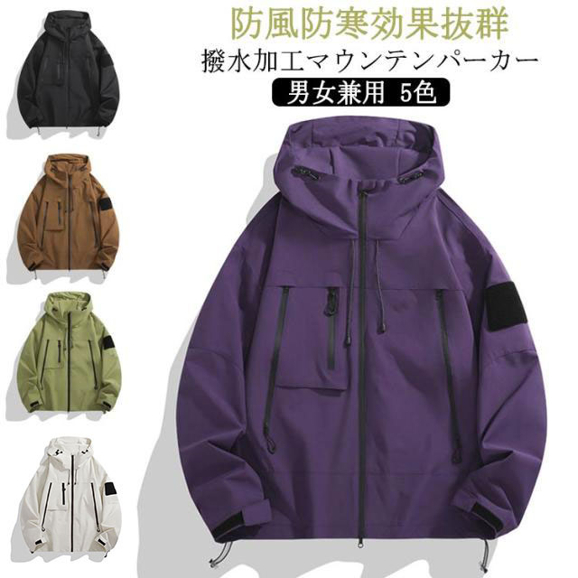 マウンテンパーカー メンズ 送料無料 ブルゾン カップル アウトドアウエア 撥水 アウトドアジャケット フード付き ジャケット ブルゾン レディース 防風 ウインドブレーカー 山登り 登山服 スポーツ キャンプ 釣り フィッシング 春 秋 冬 大きサイズ 5色