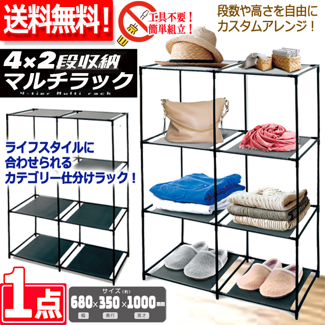1点 工具不要 簡単組立式 モダン シンプル 新生活 コレクションラック (4段×2収納スチールマルチラック 1点) クローゼット ロッカー 収納