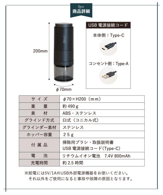 ※本製品の充電には<5V/1A>のUSBコンセントや外部充電機器をお使いください。それ以外では充電が適切に行われず事故や故障の原因となる場合がございます。また<急速充電タイプ(2.4A、3Aなど)>には対応しておりません。