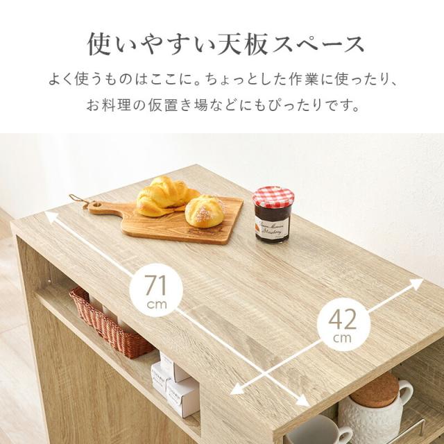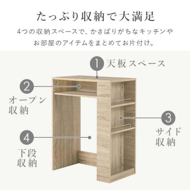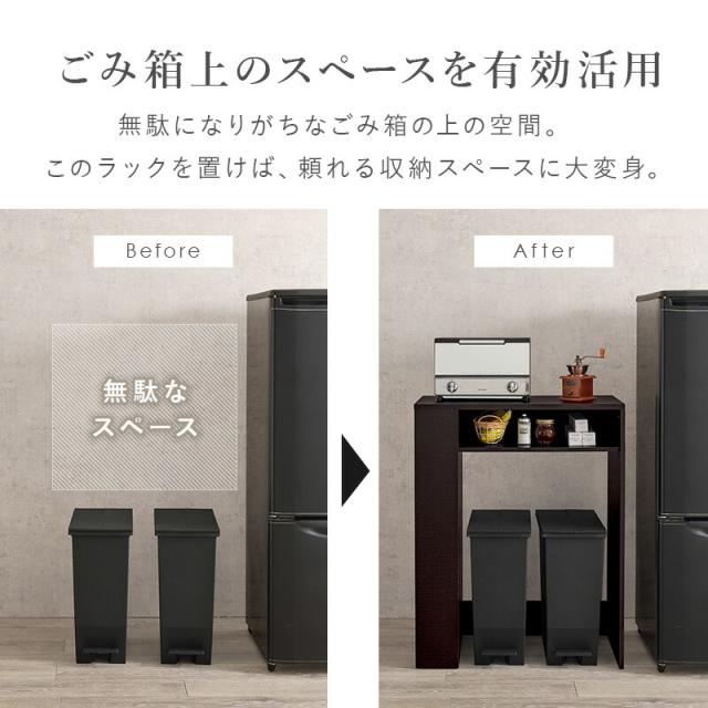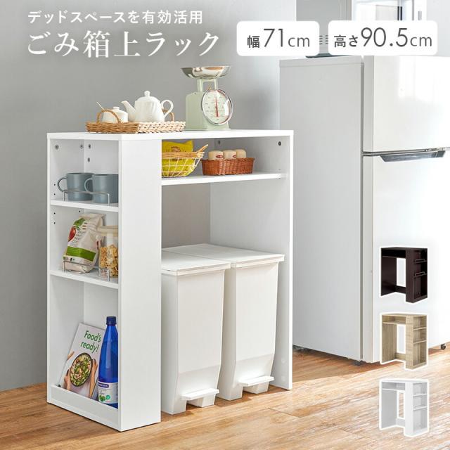 ゴミ箱上 ラック VKR-7146 ゴミ箱 分別 天板付き サイド収納付き キッチンワゴン スリム キッチン小物 木製 ラック 幅71cm 棚 オープンラック 収納棚 シンプル おしゃれ 北欧 モダン