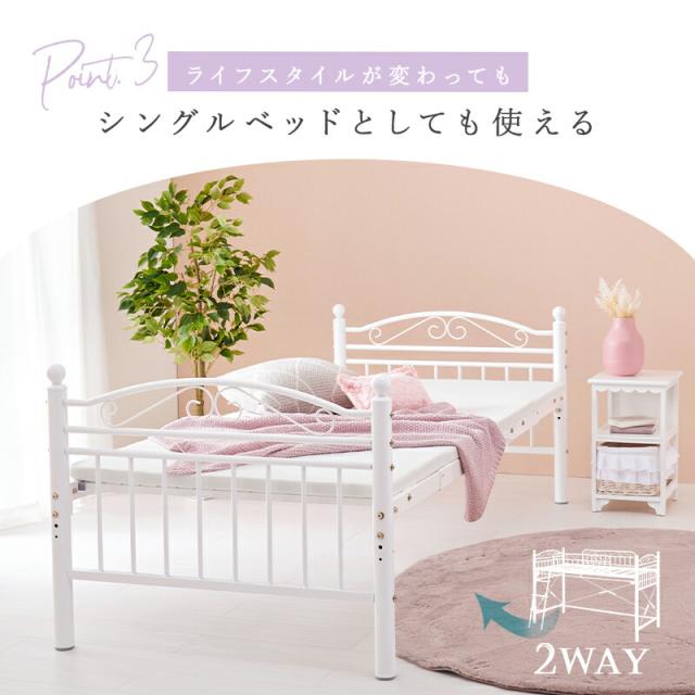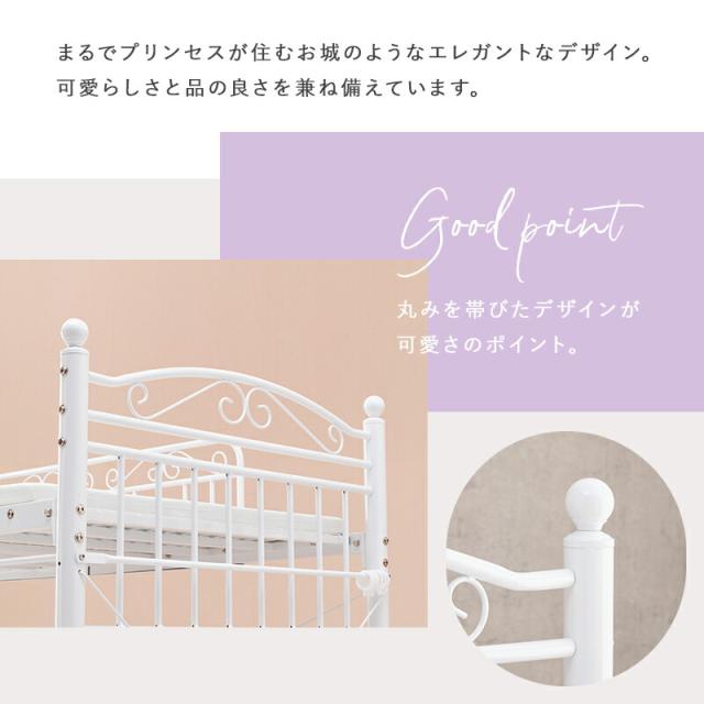 ロフトベッド ロータイプ 高さ138cm カーテン別売 2way シングルベッド プリンセス ロフトベッド パイプロフトベッド 姫系 おしゃれ 北欧 ロマンティック KH-3590