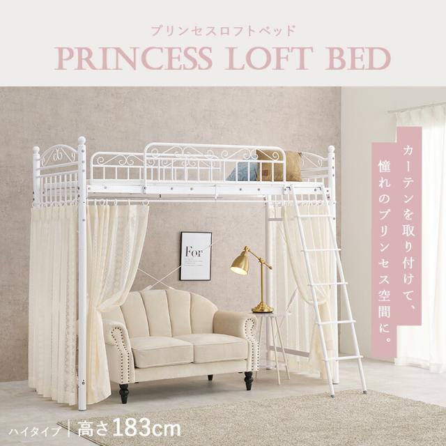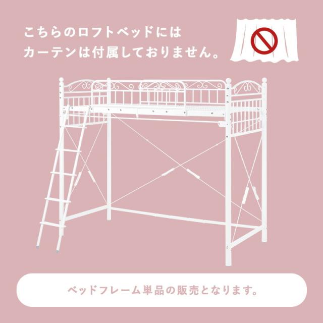 カーテンを取り付けられるロフトベッド カーテンを取り付けられるロフトベッド ハイタイプ 高さ183cm カーテン別売 2way シングルベッド プリンセス ロフトベッド パイプロフトベッド 姫系 おしゃれ 北欧 ロマンティック KH-3592