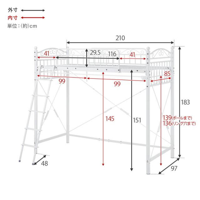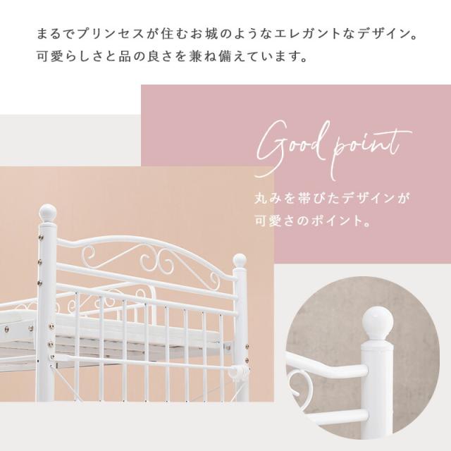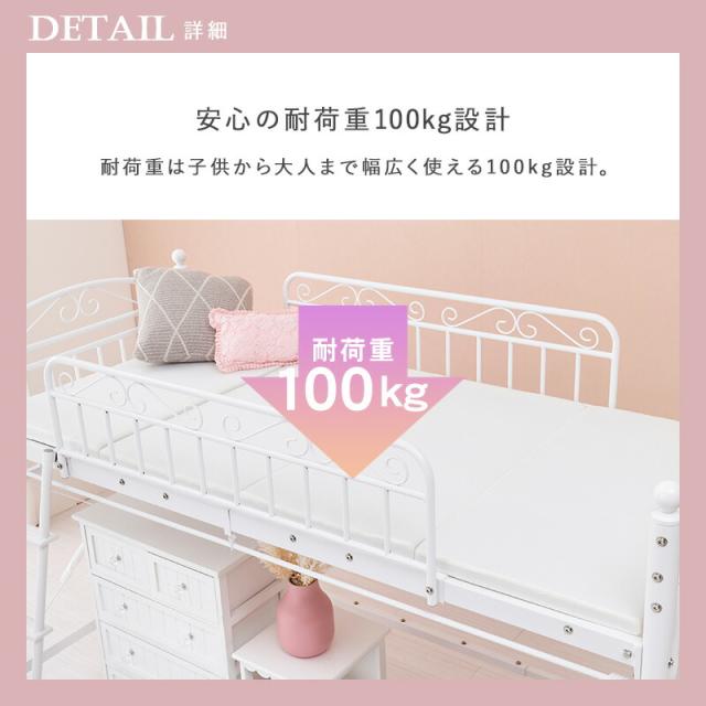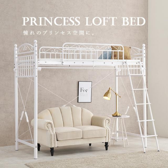 ロフトベッド ハイタイプ 高さ183cm カーテン別売 2way シングルベッド プリンセス ロフトベッド パイプロフトベッド 姫系 おしゃれ 北欧 ロマンティック KH-3592