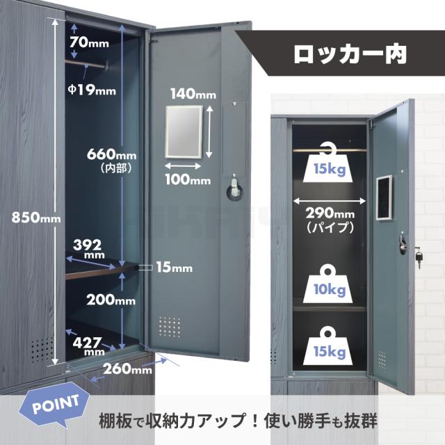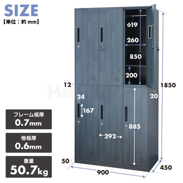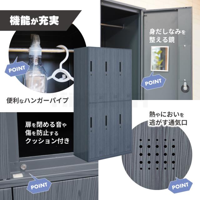 スチールロッカー 6人用 木目調 ロッカー 鍵付き 3列2段 ハンガーパイプ 棚 鏡 収納 おしゃれ オフィス 事務所 会社 店舗 病院 学校 更衣室 業務用 KIKAIYA