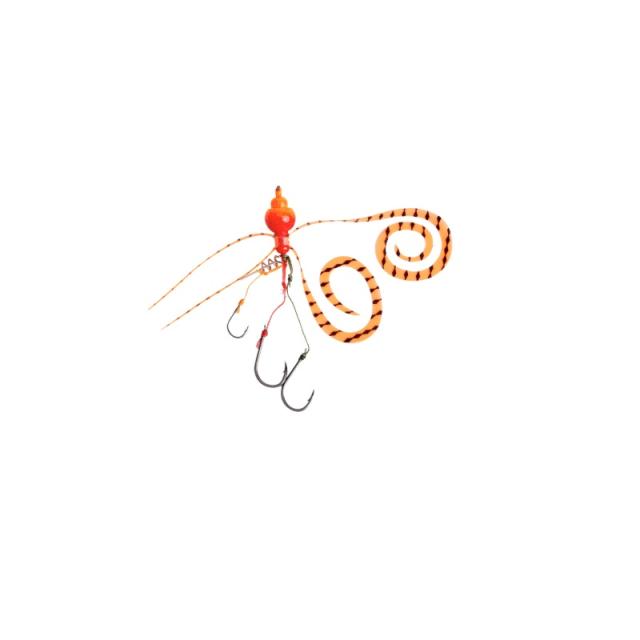 しっかりと掛けるメインフック2本とヘッドにアタックした小さめの鯛もきっちり掛ける孫針1本の3段針仕様。