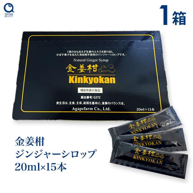 国産 ジンジャーシロップ きんきょうかん(金姜柑) 機能性表示食品 オーガニック しょうがシロップ 生姜シロップ 無添加 アガペ薬局 アガペファーム 20ml×15本 1箱