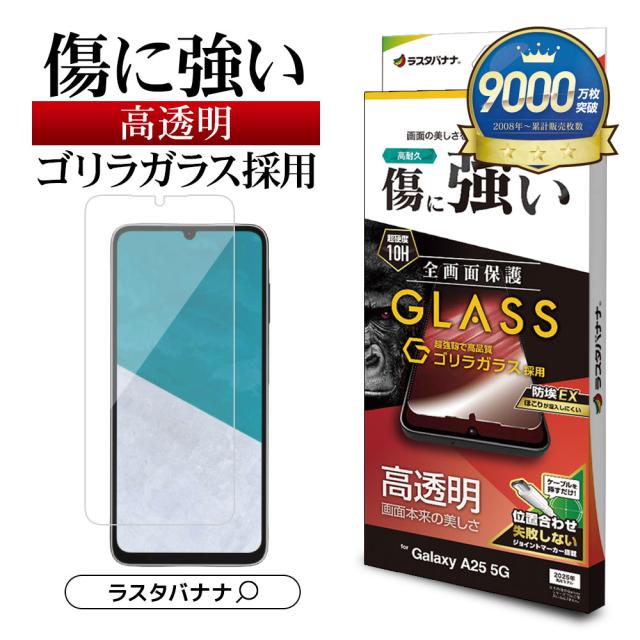 Galaxy A25 5G ガラスフィルム 全面保護 高光沢 高透明 クリア ゴリラガラス採用 ホコリ防止 貼り付けガイド 0.33mm 硬度10H ギャラクシー SC-53F SCG33 保護フィルム GG4796GA25 ラスタバナナ
