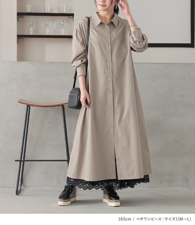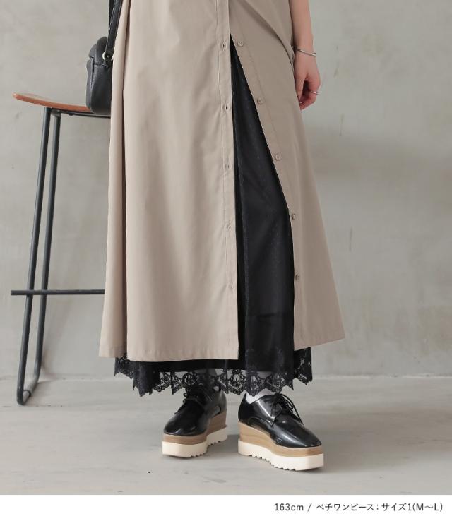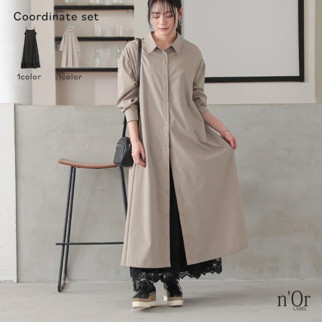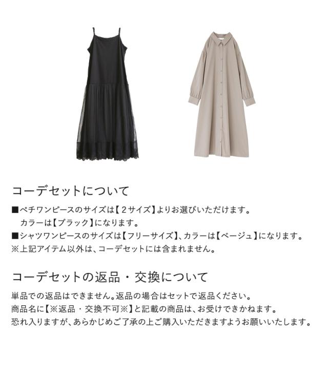 【送料無料】『贅沢レースロングペチワンピース×袖ギャザーシャツワンピースコーデ2点SET』【メール便不可】【20】[2点コーデセット 2025 レディース ワンピース ロングワンピース ペチワンピース シャツワンピース]