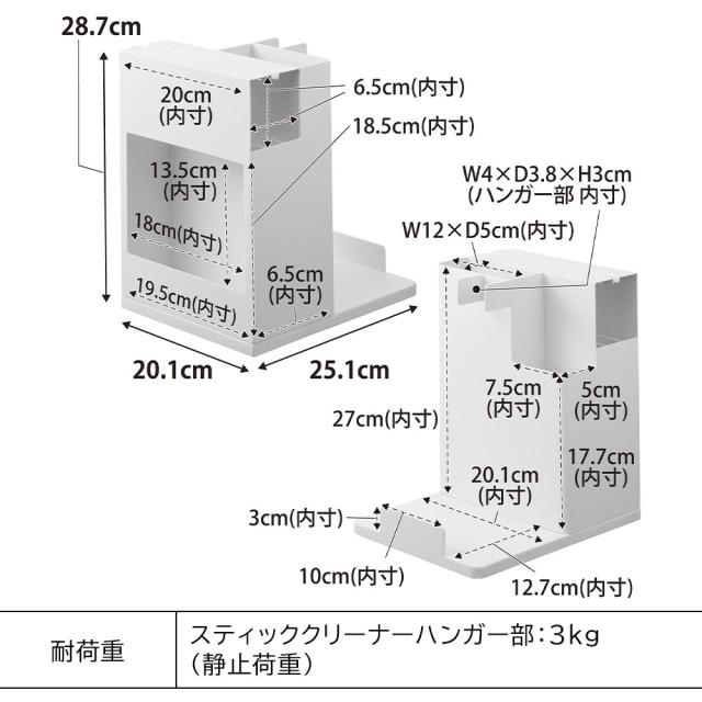 | スティッククリーナーハンガー部:3kg(静止荷重) |