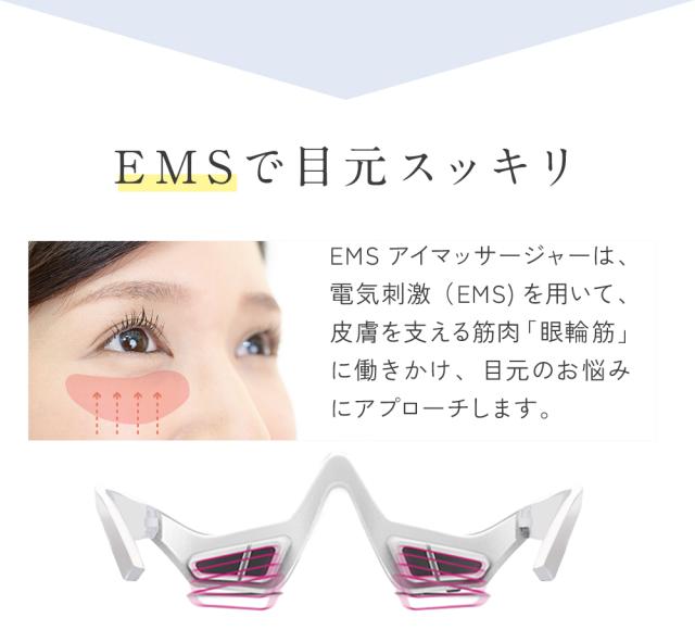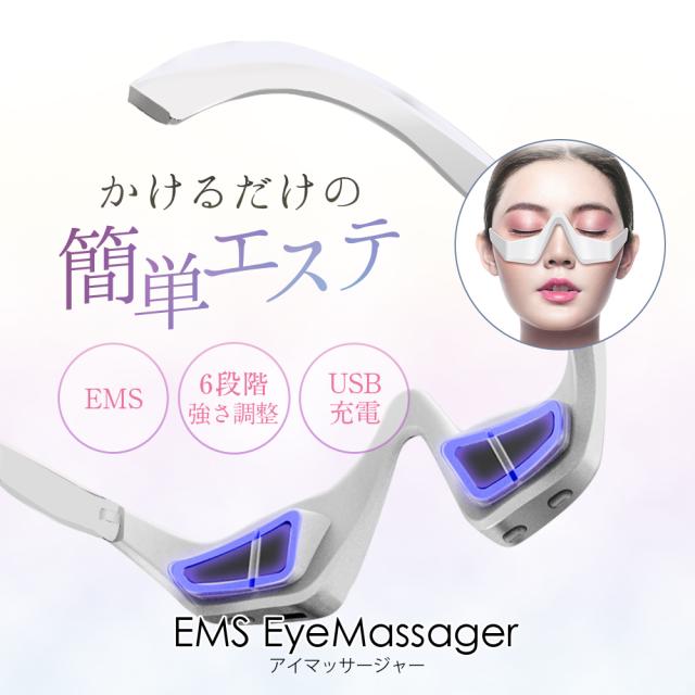 目元美顔器 アイマッサージャー EMS 3ヶ月保証 ハンズフリー 目元エステ 目元ケア 簡単操作 充電式 EMS EyeMassager メガネタイプ 軽量 目元 たるみ ほうれい線 ながら美容 プチプラ クマ メーカー保証付き エイジング