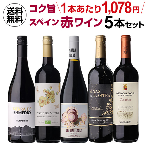 ワイン ワインセット 赤 5本 飲み比べ 送料無料 金賞、オーガニック入 超コスパ スペイン赤5本セット 37弾 浜運 虎