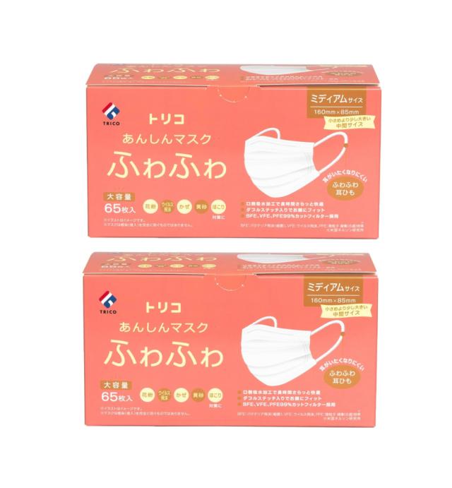 不織布 マスク trico トリコ あんしんマスクふわふわ ミディアム 65枚×2【2個セット】送料無料 小さめ スモール