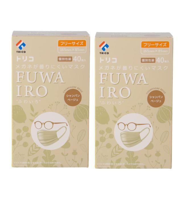 trico トリコ メガネが曇りにくいマスク FUWAIRO ふわいろ シャンパンベージュ フリーサイズ 40枚×2 【2個セット】おしゃれ カラーマスク 個包装