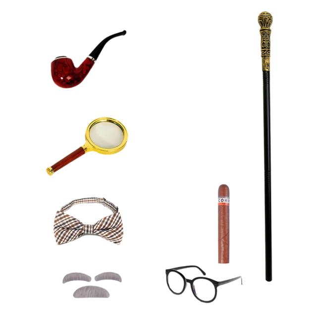 探偵 コスプレ 7点セット シャーロック ホームズ 探偵 小物 探偵グッズ ステッキ メガネ ルーペ 虫眼鏡 蝶ネクタイ パイプ 葉巻 付けヒゲ 探偵 コスチューム つけ髭 セット シャーロッキアン 探偵 読書 コナン ドイル 探偵グッズ ハロウィン 衣装 小道具 舞台 演劇