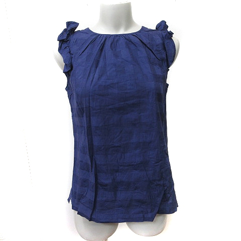 【中古】オールドイングランド OLD ENGLAND シャツ ブラウス ノースリーブ フリル ボーダー 34 XS 紺 ネイビー /YI レディース