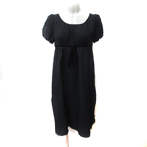 【中古】シノワ CHINOIS ワンピース ひざ丈 半袖 シフォン ドット 黒 ブラック /YI レディース
