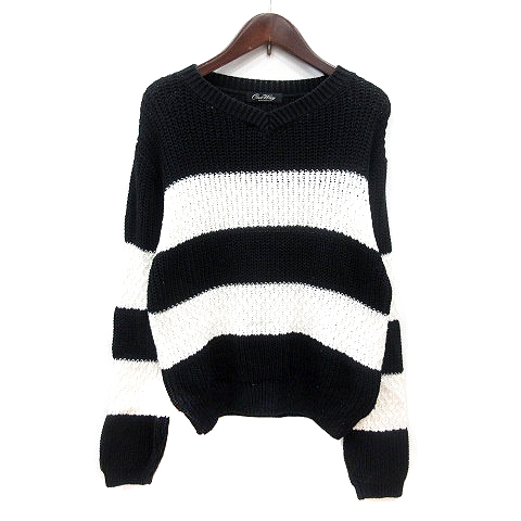 【中古】ワンウェイ one way ニット セーター Vネック ボーダー 長袖 F 黒 ブラック 白 ホワイト /MN レディース