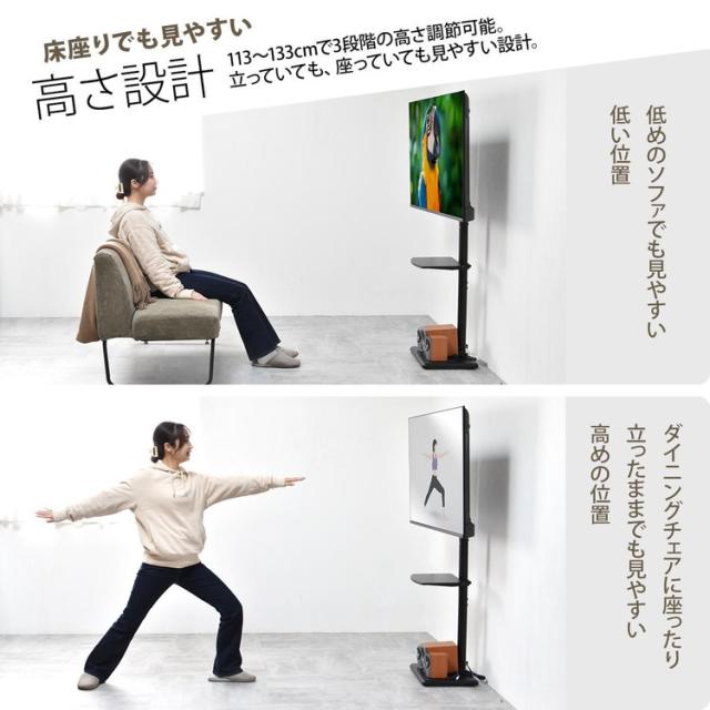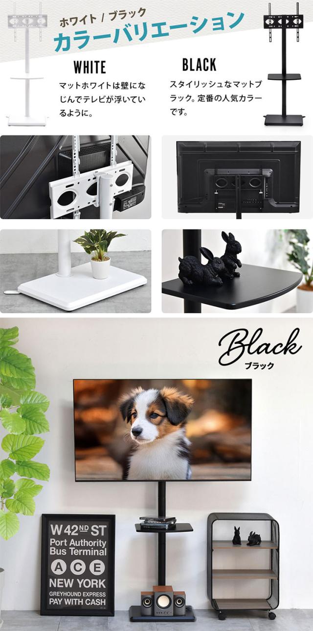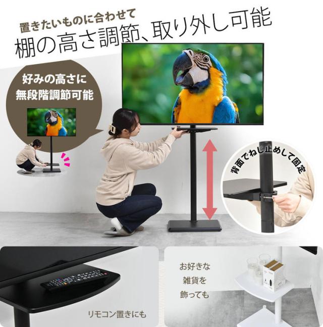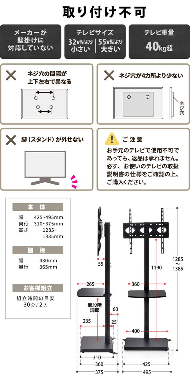 ■素材:【支柱】スチール(粉体塗装) 【底板】中質繊維板(メラミン貼り) 【対応テレビ】32-55型 【対応VESA】100×100〜400×400mm