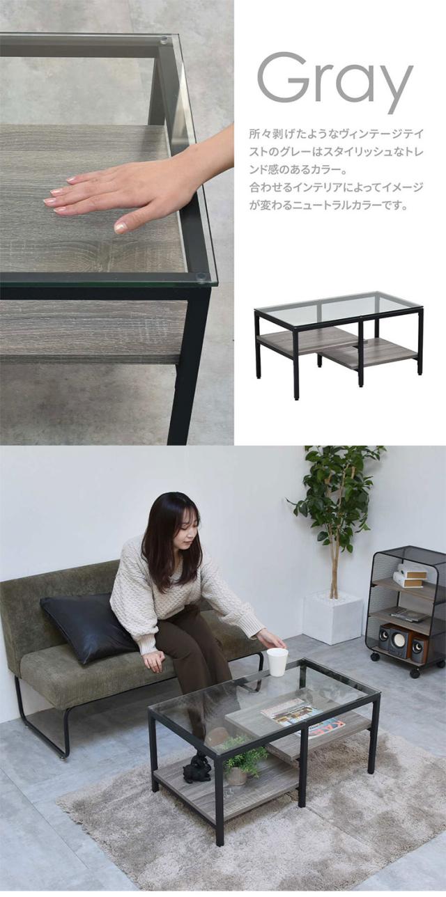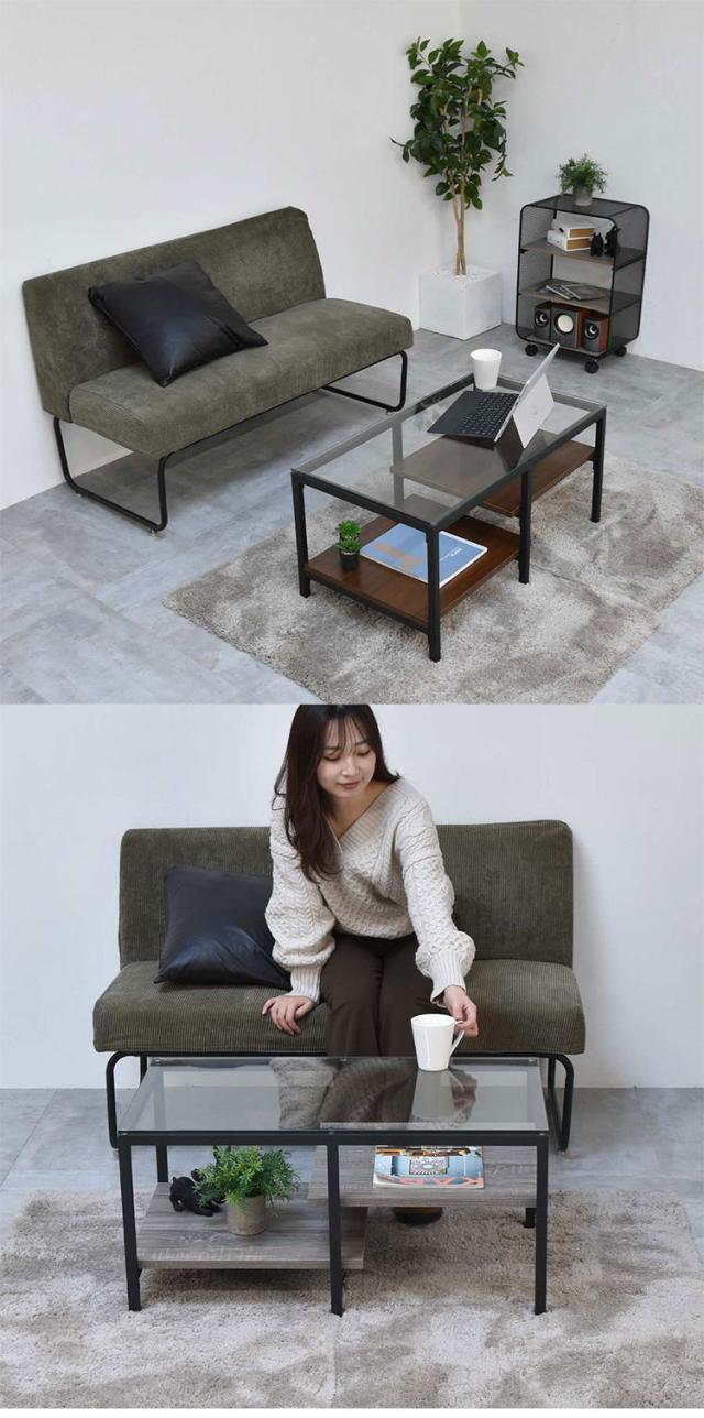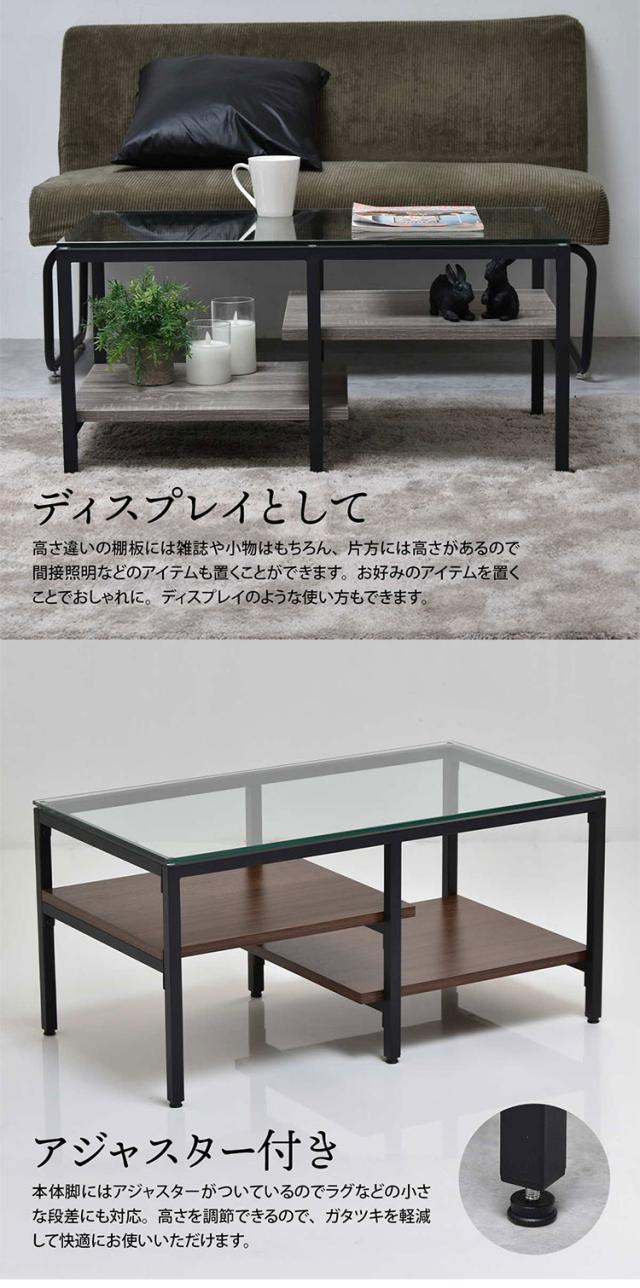 ■強化ガラス製の天板と左右で高さの違う棚板を備えたアシンメトリーなデザインのセンターテーブルです。収納部にはリモコンや雑誌など日常で使用するものを収納することはもちろん、棚の高さに変化を持たせていることでお気に入りのアイテムをスタイリッシュにディスプレイすることが可能です。透明なガラス天板は圧迫感を軽減ながら、抜け感のある美しい空間作りを演出します。