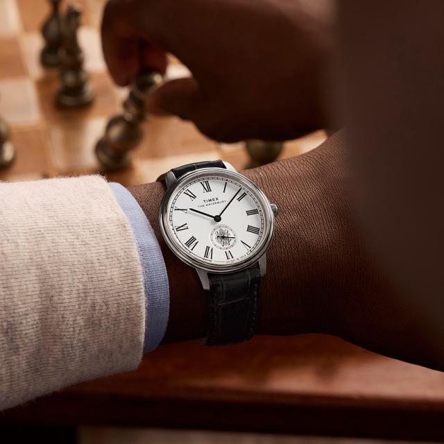 "ドルを有名にした"懐中時計「ヤンキー」に端を発する、正統派なローマンダイアルのデザインに創業当初の社名「ウォーターベリークロックカンパニー」のモノグラムをスモールセコンドのサブダイアルに配したニューモデル。