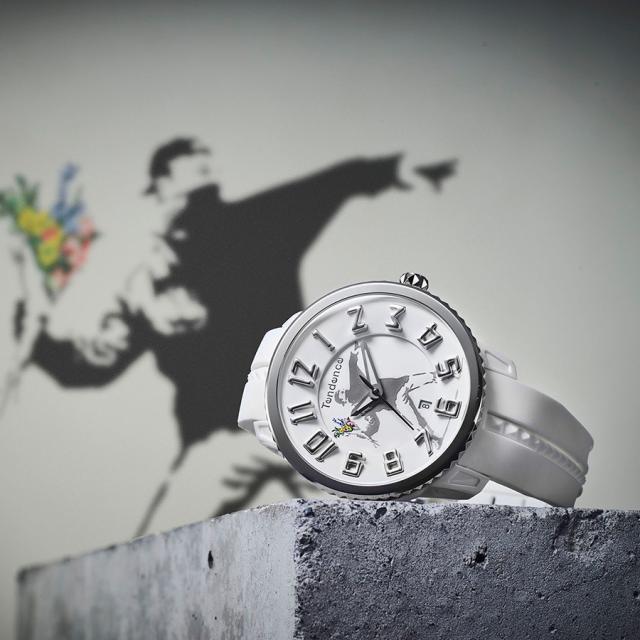 Tendenceは、バンクシー作品を商品化する権利を持つイギリスFull Colour Black社によるグラフィティアートプロジェクト、BRANDALISED™とのコラボレーションを実現しました。UVプリント技術を使い、バンクシーの名作「FLOWER BOMBER」「Keep it real」をダイヤルに描いた特別なタイムピースです。